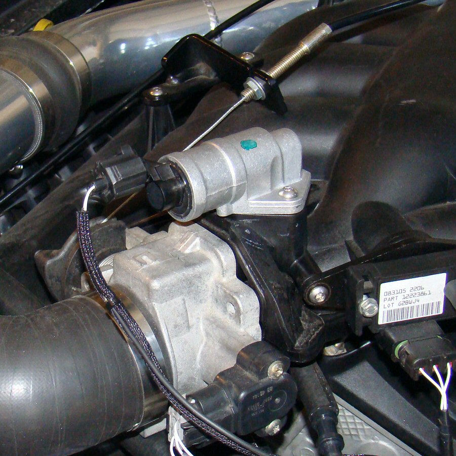 For some unexplained reason, the Noble engine ships without an idle air control valve.  Idle speed is adjusted by a turning throttle stop screw and creating an ignition advance "well" at the target idle speed.  This does not do a good job of accommodating large temperature changes or load changes such as the a/c compressor or radiator fans kicking in.  Ford makes an idle air valve for this engine, so I installed one.  Now I have ECU control over idle speed.  What a concept!