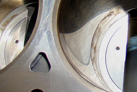 The cylinder heads were treated to full porting. along with new bronze valve guides and new valve seats.  This pic shows the roughed in ports.  It does not show Dave Rebello's combustion chamber alteration.