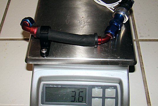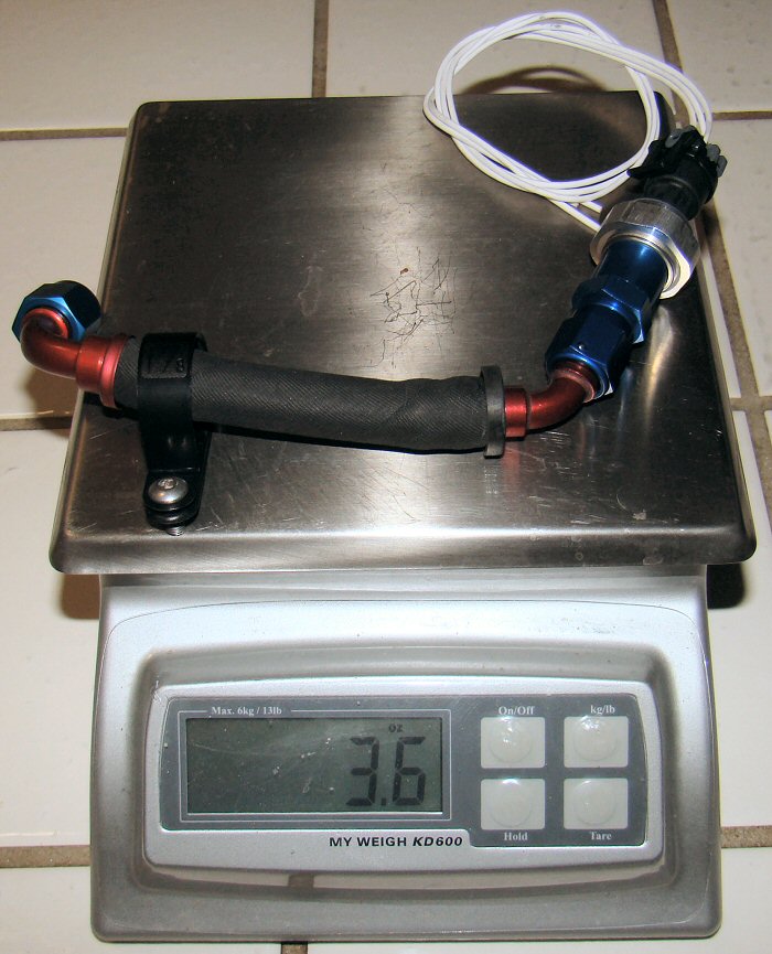 As always, weight is a concern. The Noble weighs a smidge under 2400 pounds, and I don't want to spoil that. My fuel pressure sender, plumbing, and connector pigtail add less than 1/4 pound. It's worth the weight.