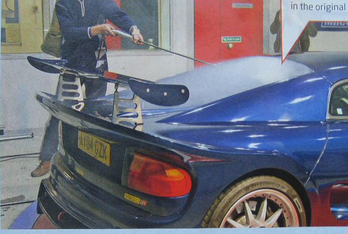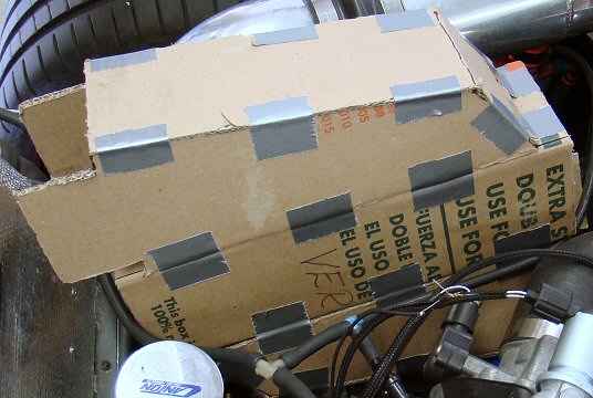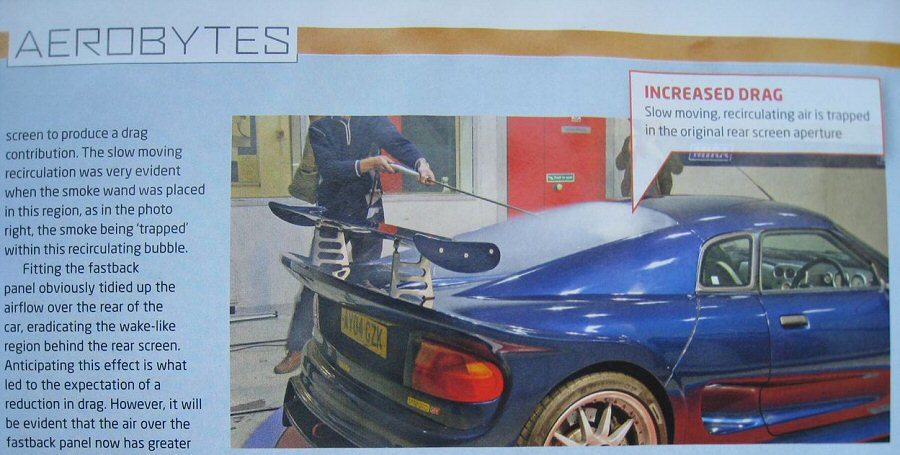 Turbo engines need intercoolers, and intercoolers need a steady flow of ambient air to carry away the heat they've pulled from engine intake air. The Noble intercooler is located in the rear of the car, directly above the exhaust system (!). And, as shown in the wind tunnel pic above, it gets very little ambient air flowing through it. I saw intake air temps of 140F on a 65F spring day when I parked for a 20 minute coffee after a spirited drive. A 30 minute highway drive brought the intake air temp down to the 120s. Clearly the factory intercooler doesn't work as it should.