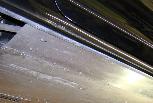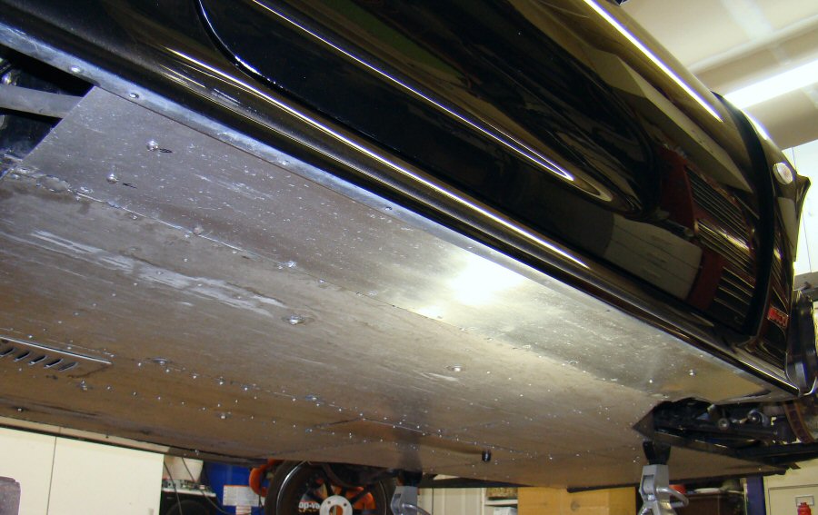 This dead space below the doors was the perfect spot for the water tanks. The small amount of added weight (about 1 gallon each) is located very low in the car, between the axles, and evenly spread between front and rear. I bought square aluminum tube from McMaster and had TIG Meister Craig Hill work his magic to cap the tubes, and add bungs and mounting tabs. As always, Craig's craftsmanship is flawless.
