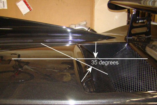 I think this sums up why the factory air/air intercooler doesn't work. The wind tunnel pic on the first intercooler page proves that the air above the rear deck is nearly stagnant. Any air that is moving back there is not going to be interested in making the 35 degree turn into the intercooler. It's going to flow straight over the top of the inlet. A fastback clam will decrease this angle somewhat, but not to the ideal inlet angle for a NACA duct. read Simon Mcbeath's book if you don't want to take my word for it. I did.